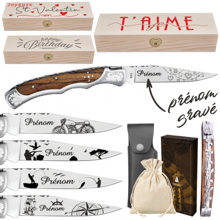 Laguiole Bougna Burl : personnalisable et gravé en Normandie. Offrez un cadeau original.