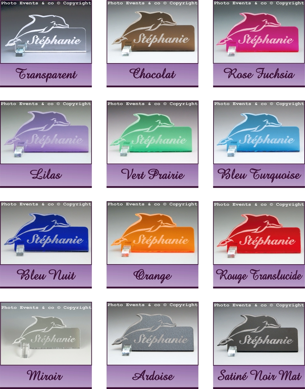 J'ai choisi le dauphin transparent : super résultat : on dirait du verre, mais en moins fragile. Produit reçu à la date prévue, je pense que mes invité seront contents : il savent que j'adore les dauphins et cela leur fera un souvenir de cette journée. Merci à l'équipe.